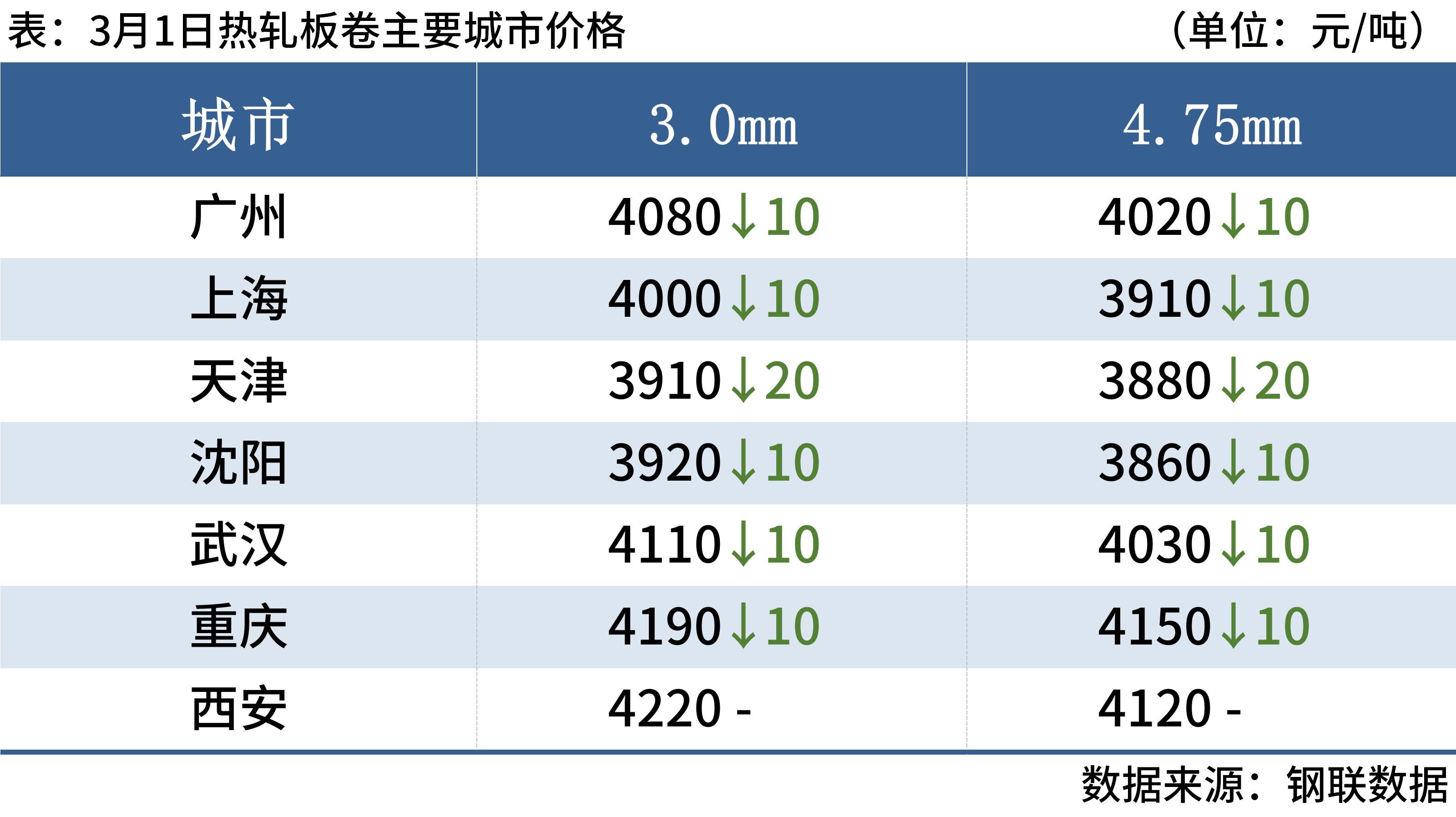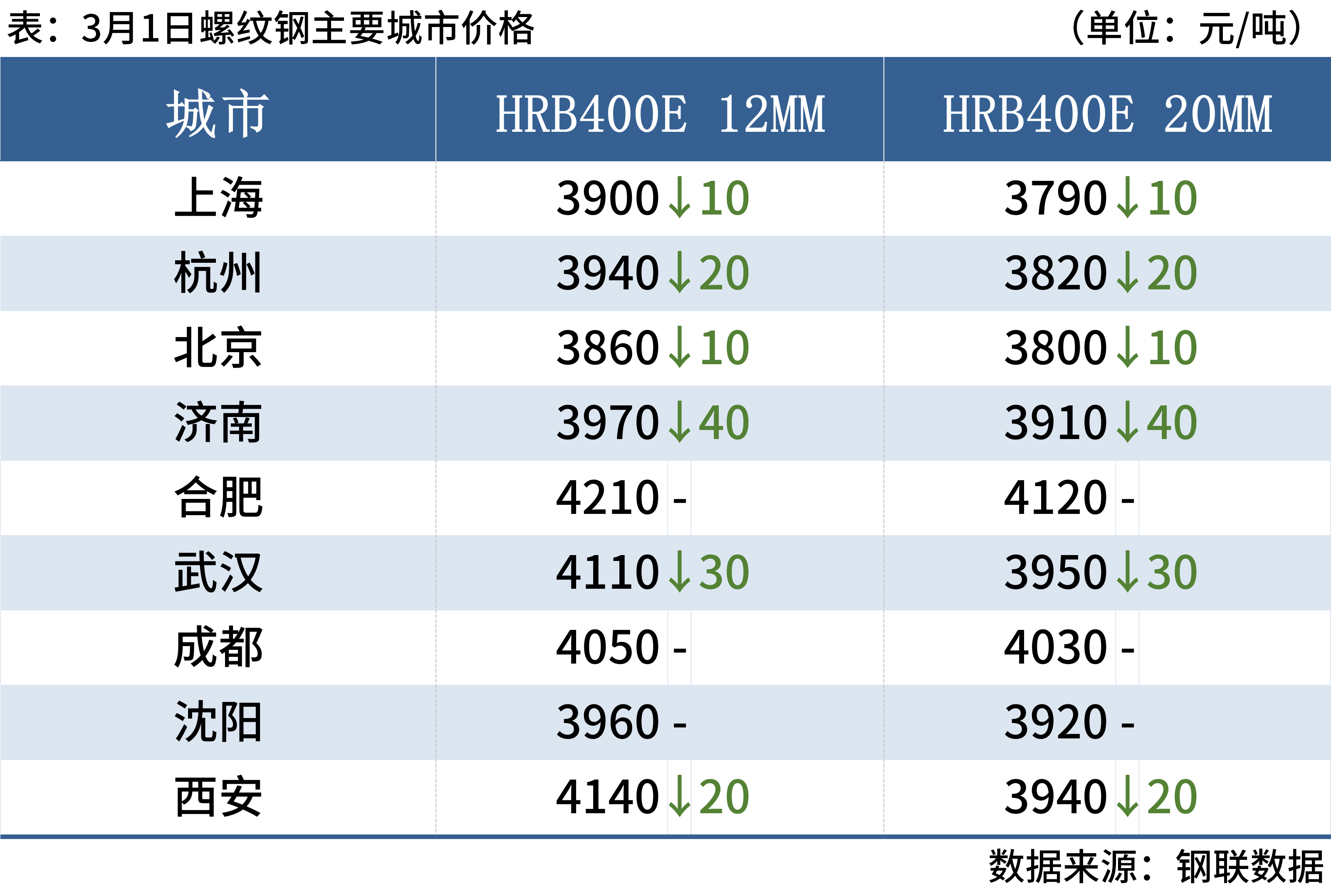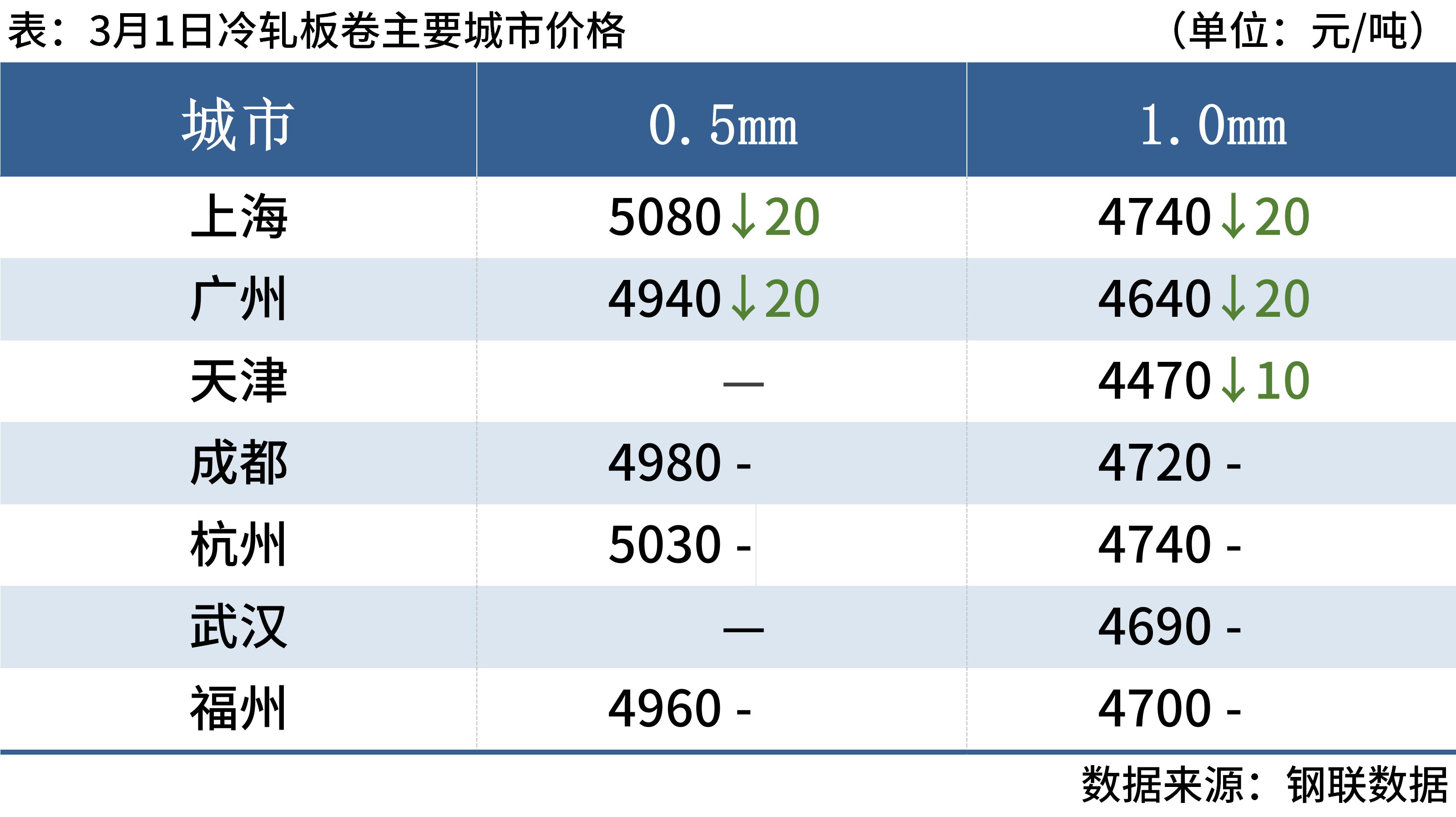 3月1日,5家钢厂建筑钢材出厂价格下调20-30元/吨,1家上调20元/吨