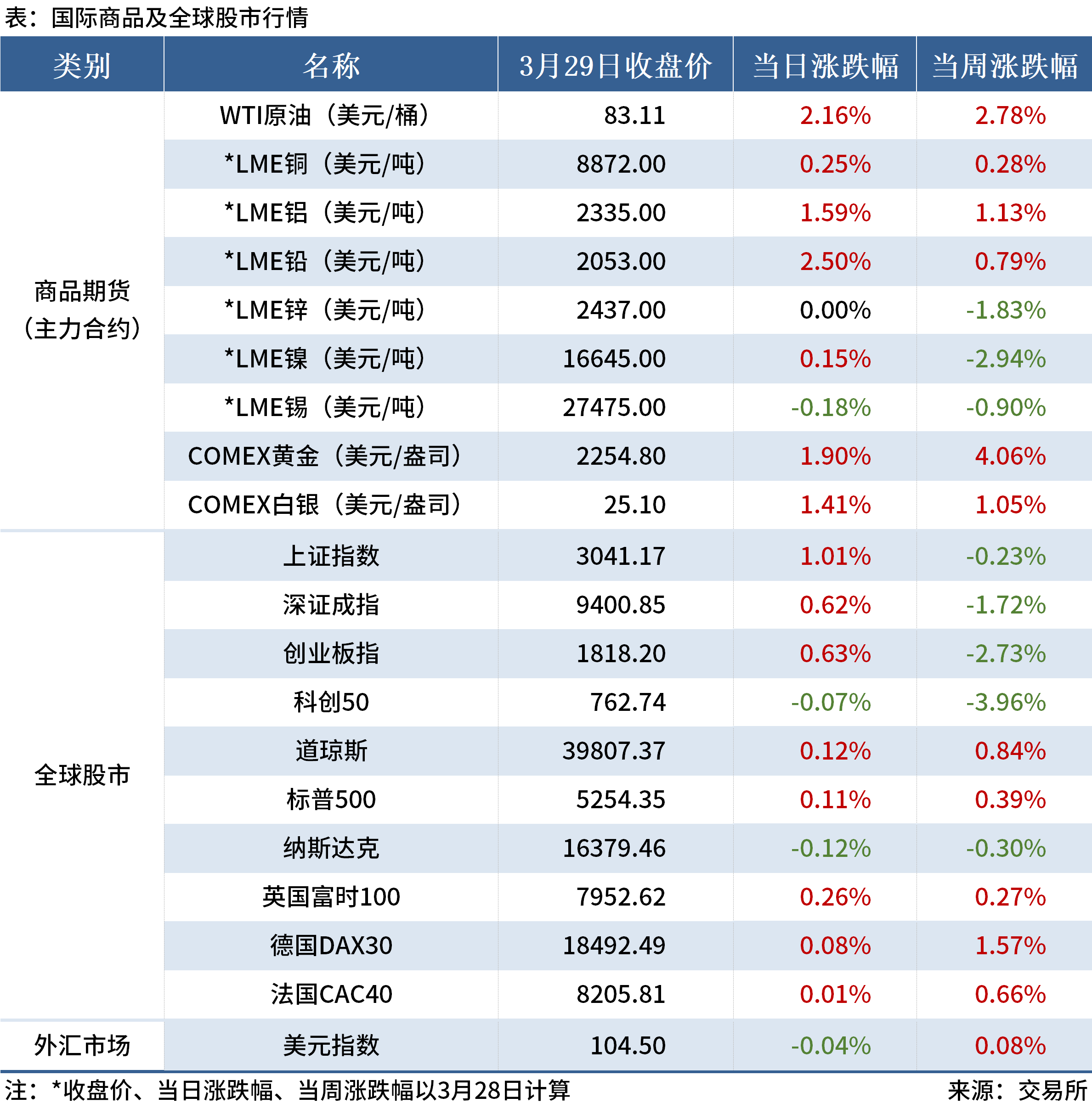 ◎据国家统计局,3月制造业采购经理指数、非制造业商务活动指数和综合PMI产出指数分别为50.8%、53.0%和52.7%,环比分别上升1.7、1.6、1.8个百分点,三大指数均位于扩张区间,企业生产经营活动加快,我国经济景气水平回升。