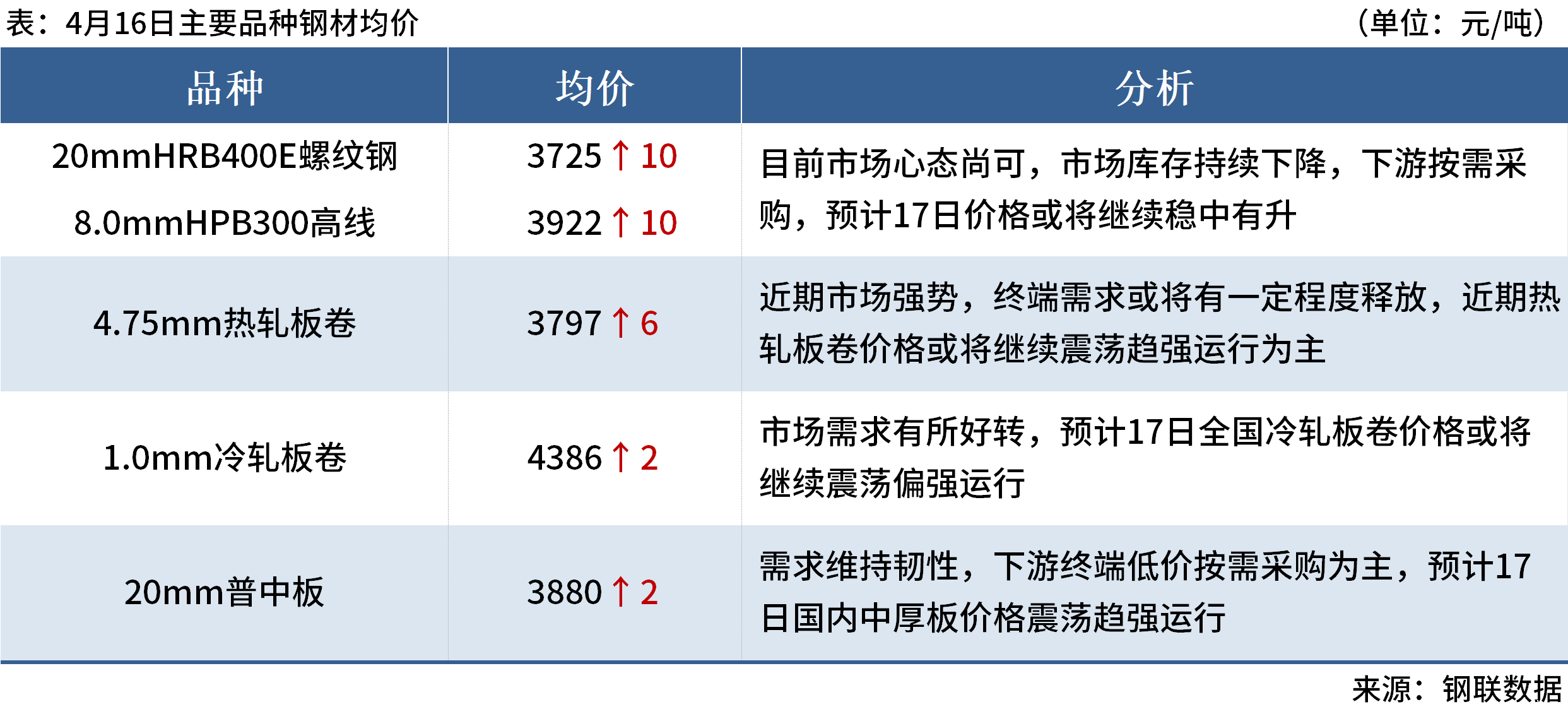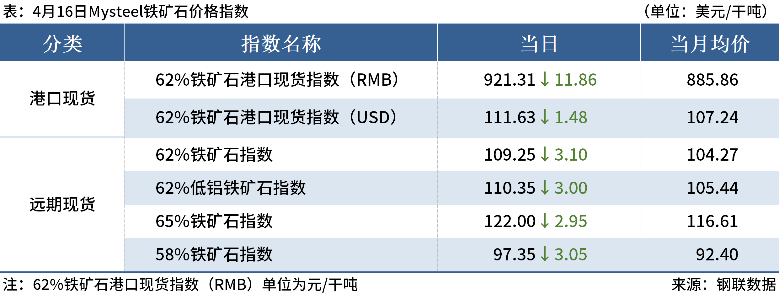 ◎4月16日,全国主港铁矿石成交92.30万吨,环比减11.2%;237家主流贸易商建筑钢材成交14.58万吨,环比减12.8%。