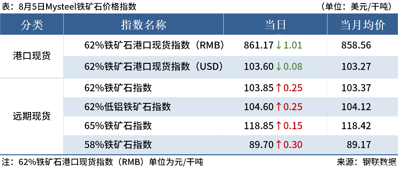 ◎8月5日,全国主港铁矿石成交77.40万吨,环比减22.3%;237家主流贸易商建筑钢材成交13.07万吨,环比增4.8%。