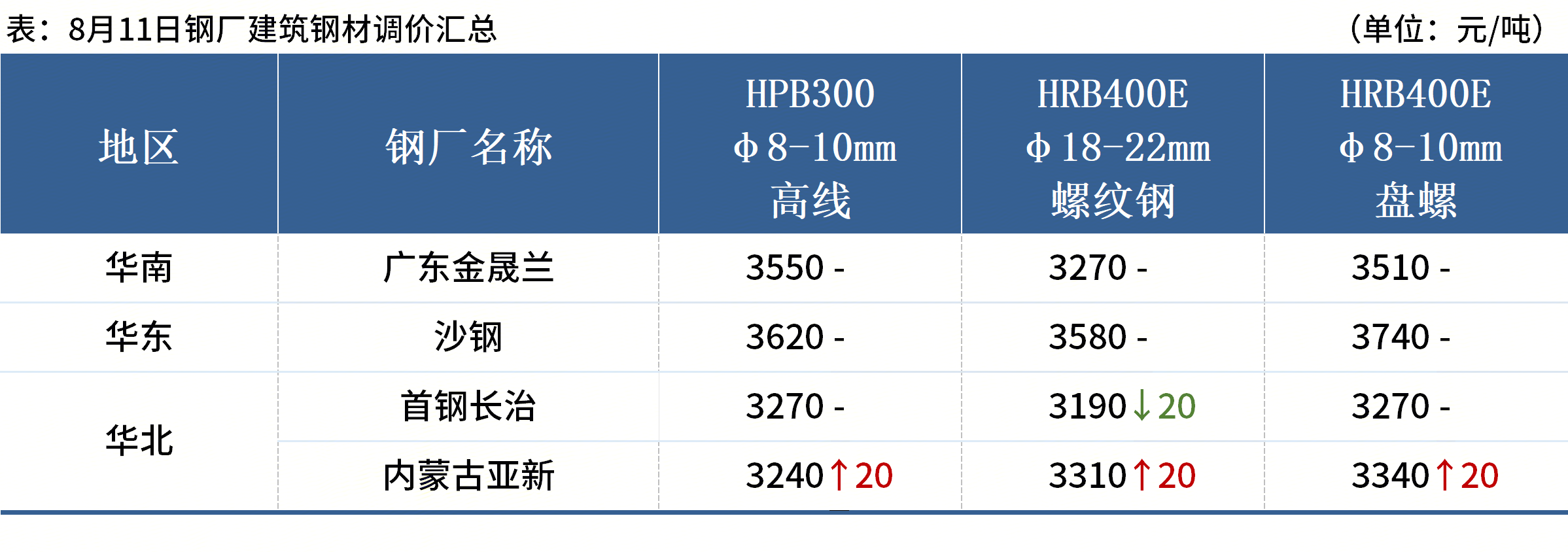 ◎首钢迁安计划8月28日开始2160mm热轧产线进行年度检修,日均影响0.8万吨产量。