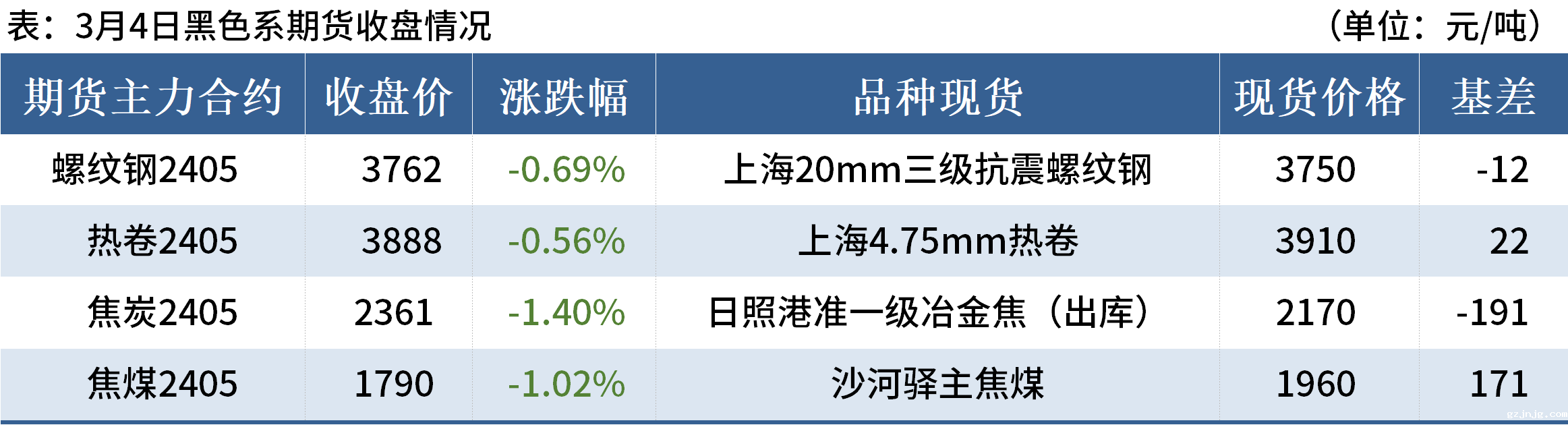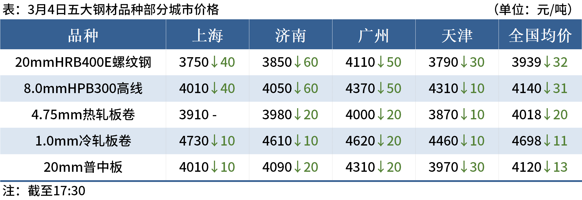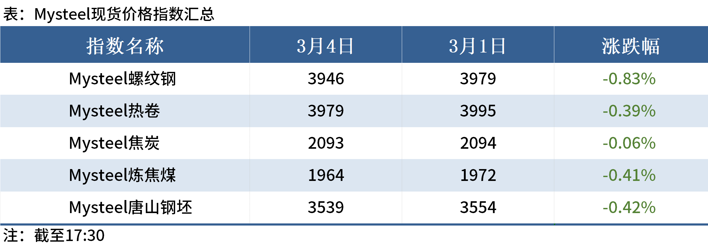 ◎3月4日,唐山迁安普方坯资源出厂含税下调10,报3510元/吨。