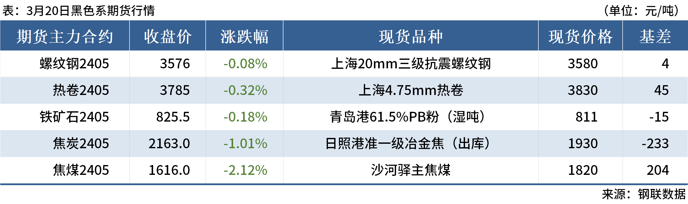 ◎3月20日,河北、山东等地主流钢厂下调焦炭采购价格,幅度100-110元/吨,至此本轮焦炭降价基本落地执行。