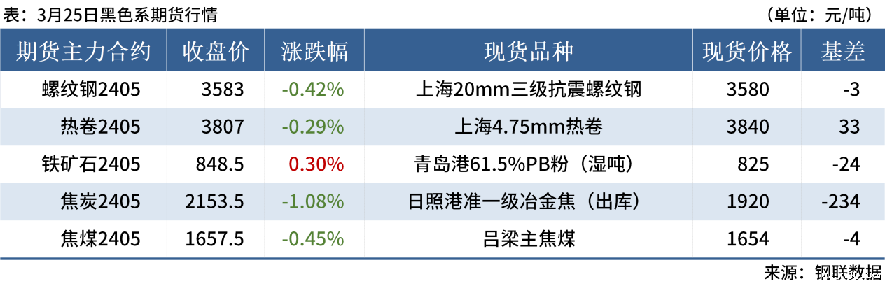 ◎ 3月25日,全国主港铁矿石成交95.20万吨,环比增26.9%;237家主流贸易商建筑钢材成交13.64万吨,环比减1%。