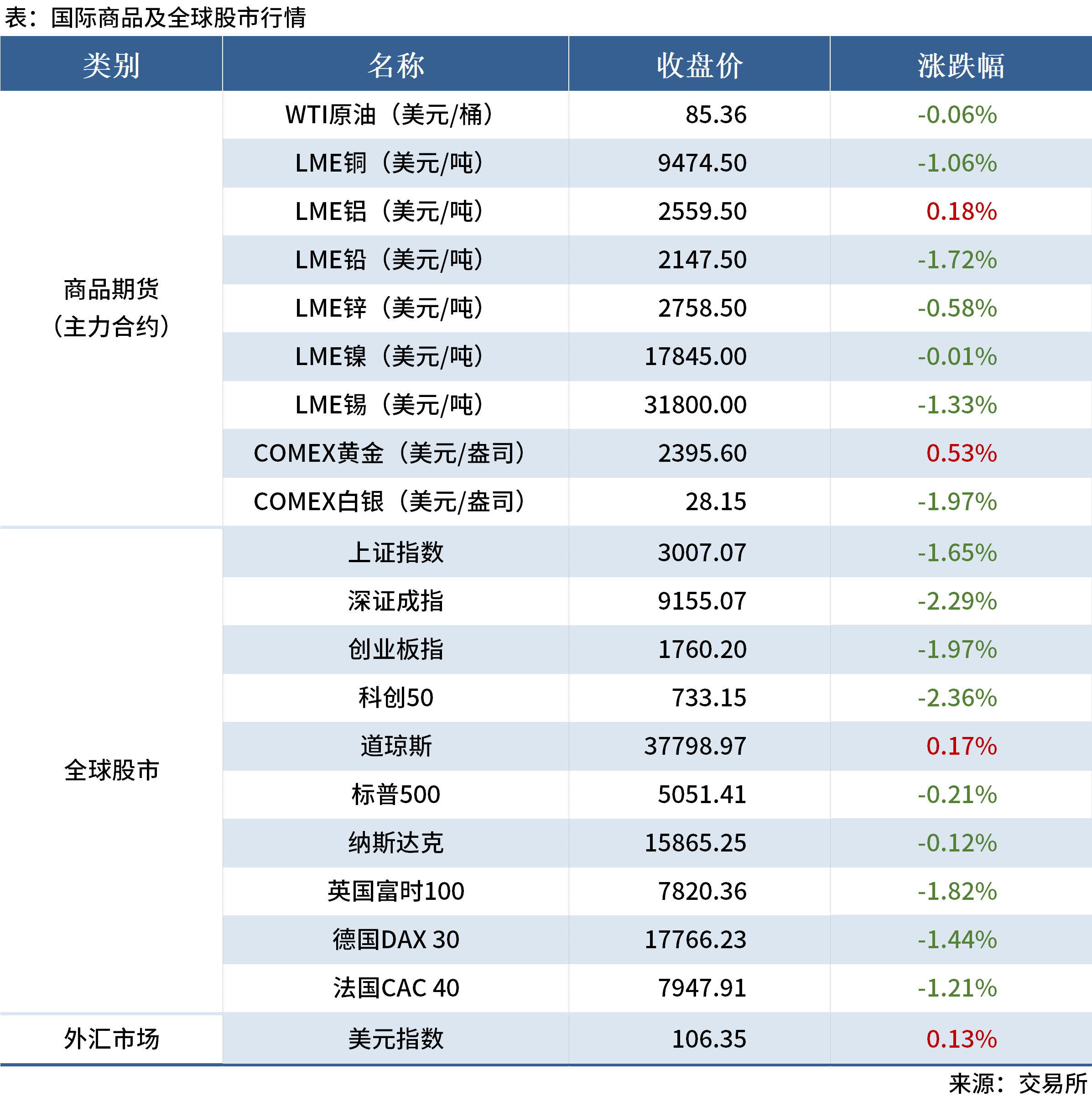 ◎上期所公告,自2024年4月17日收盘结算时起,铜、铝期货合约的涨跌停板幅度调整为7%,套保交易保证金比例调整为8%,投机交易保证金比例调整为9%。黄金、白银期货合约的涨跌停板幅度调整为8%,套保交易保证金比例调整为9%,投机交易保证金比例调整为10%。