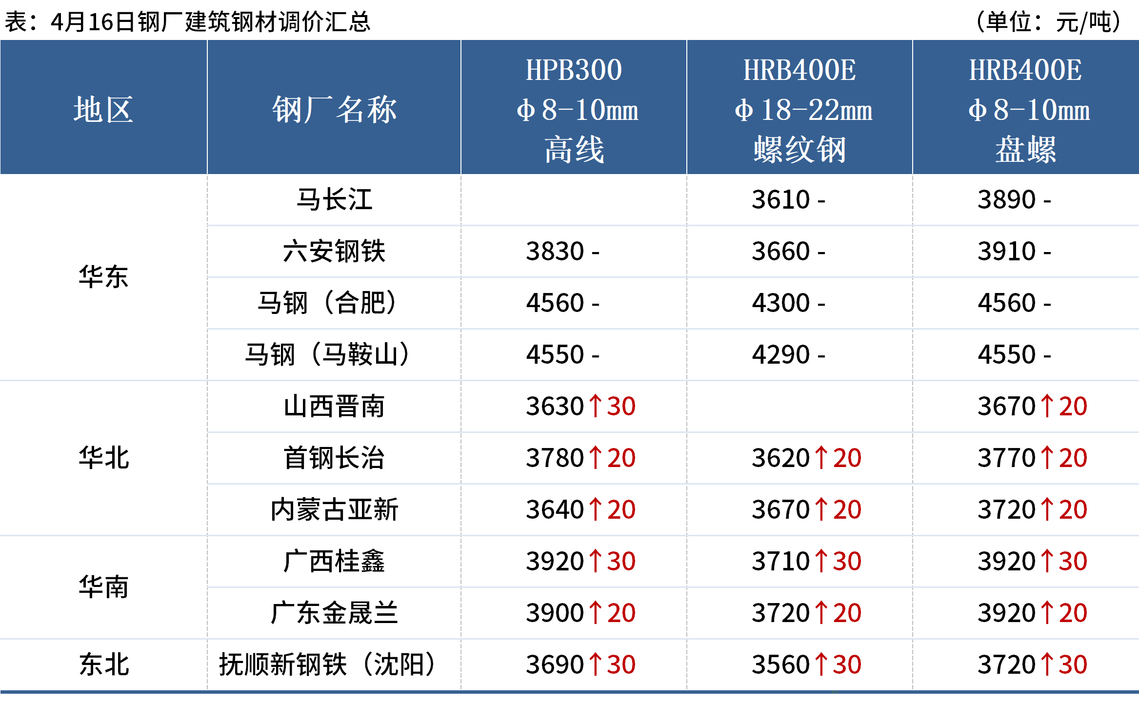 ◎4月16日,40家独立电弧炉建筑钢材钢厂平均成本为3749元/吨,环比昨日持平。平均利润亏损115元/吨,谷电利润亏损11元/吨。