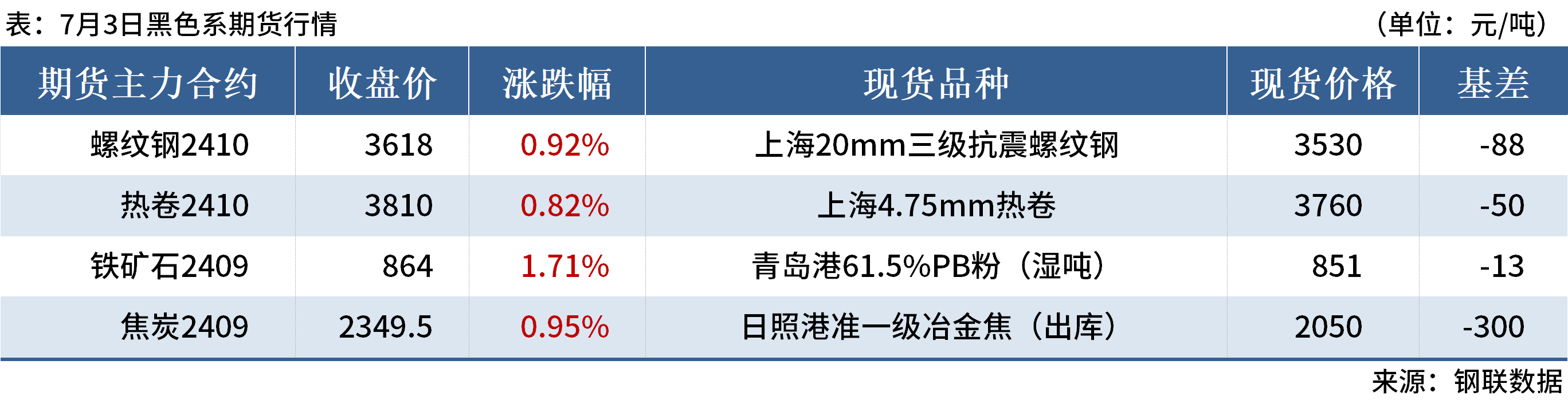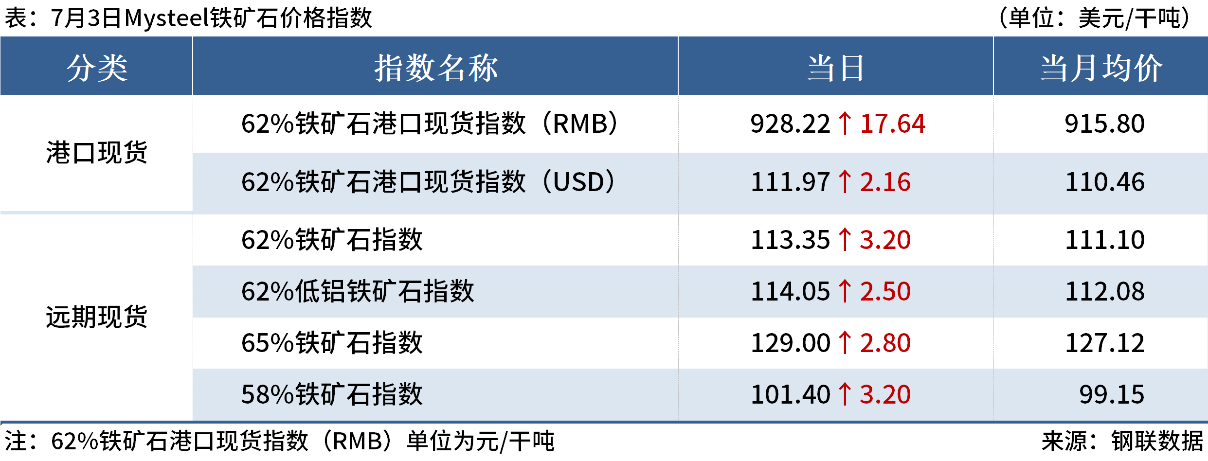 ◎7月3日,全国主港铁矿石成交112.60万吨,环比增0.6%;237家主流贸易商建筑钢材成交16.65万吨,环比增35.9%。