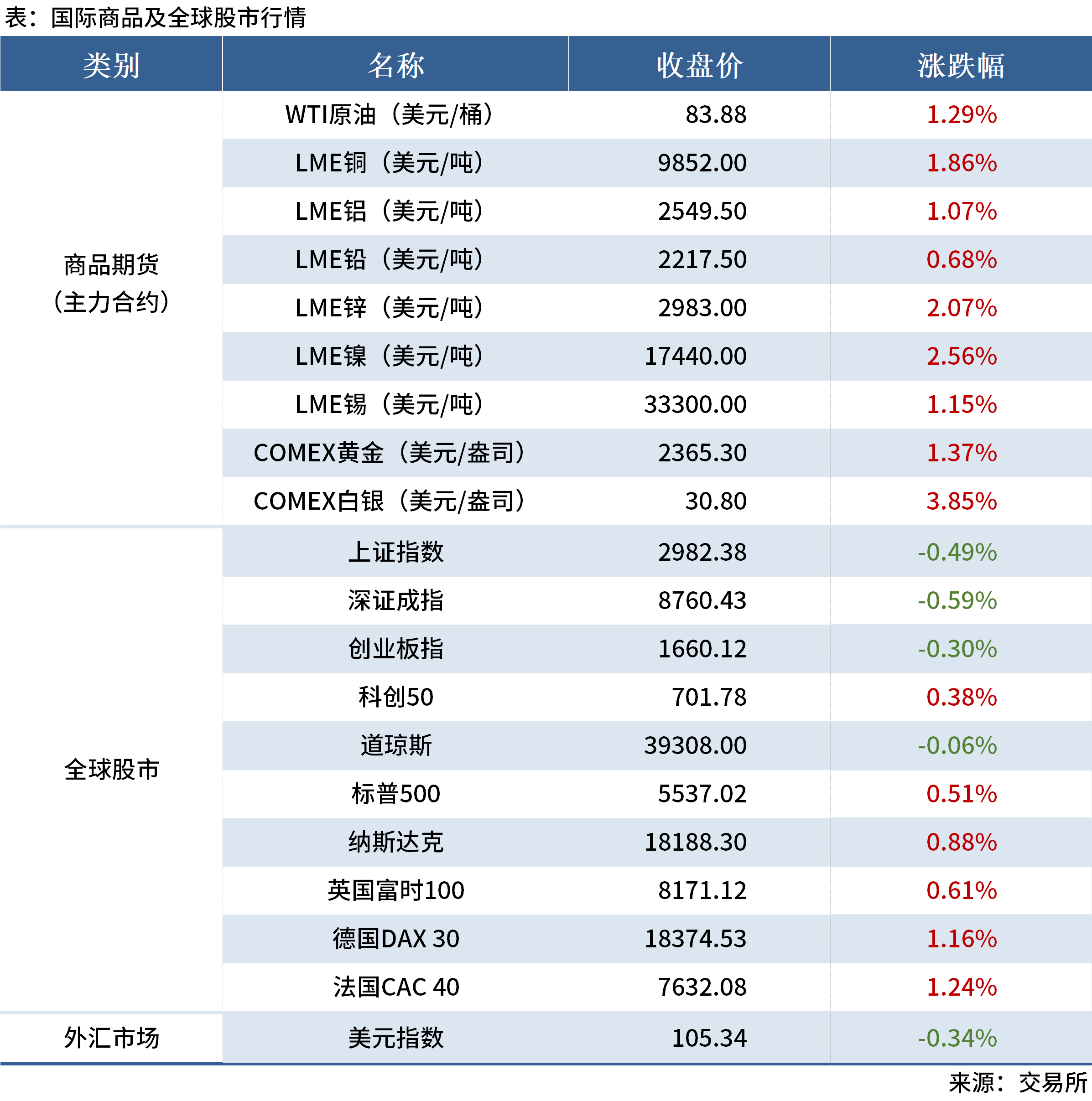 ◎美联储会议纪要显示,美联储官员在上次会议中承认美国经济似乎正在放缓,而且“物价压力正在减轻”,但仍建议在承诺降息之前采取观望态度。官员们认为,在“有更多信息让他们更有信心”通胀正朝着2%的目标迈进之前,降低借贷成本是不合适的。