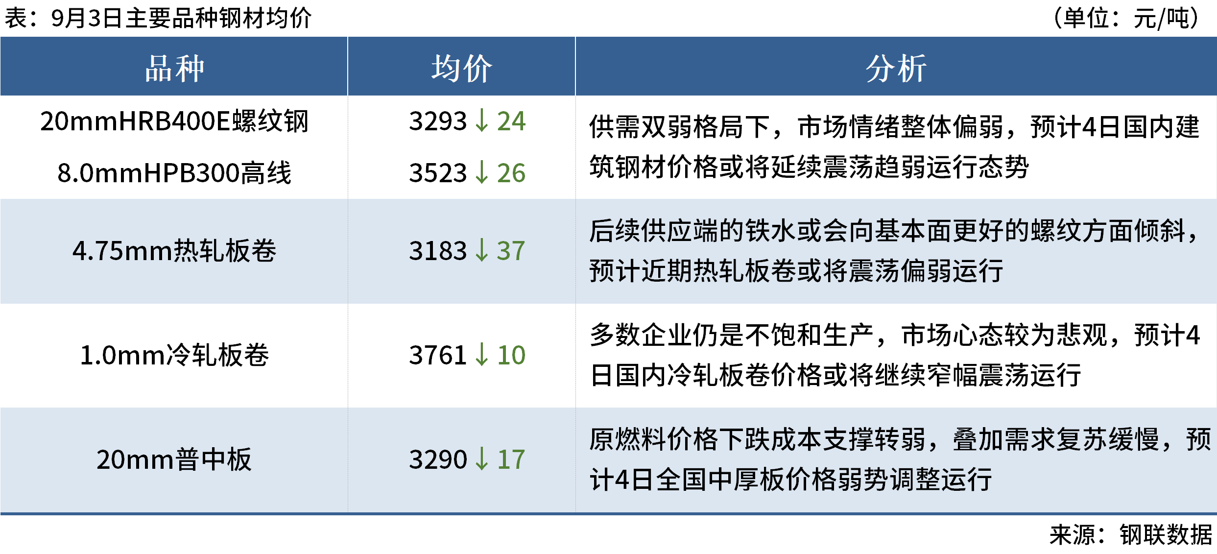 ◎9月3日,唐山钢坯出厂价格下调40元/吨,现迁安主流钢厂普方坯出厂报2870元/吨;迁安松汀钢铁普方坯出厂报2880元/吨。