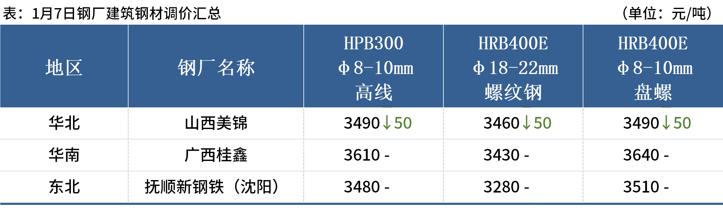 ◎1月7日,沙钢废钢采购价格下调30元/吨,调后:重三含税2450元/吨,炉一含税2530元/吨,2025年累计跌幅为110元/吨。